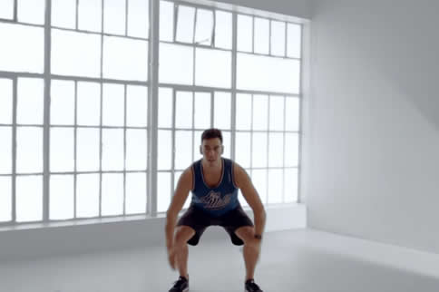 发展大腿肌肉和髋关节力量的练习。两脚分开成半蹲姿势,上体稍前倾,两臂在体后成预备姿势。两腿用力蹬伸,充分伸直髋、膝、踝三个关节,同时两臂迅速前摆,身体向前上方跳起,然后用全脚掌落地屈膝缓冲,两臂摆成预备姿势。连续进行5~7次,重复3~4组。